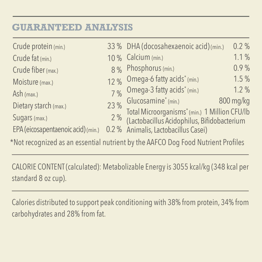 - High protein dry dog food kibble features 60 percent* high-quality animal ingredients and 40 percent** wholesome fruits and vegetables