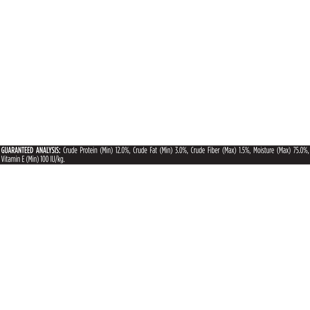 Water, beef, wheat gluten, liver, brown rice, meat by-products, corn starch-modified,vegetable oil (source of medium-chain triglycerides), tricalcium phosphate, artificial and natural flavors,soy flour, salt, MINERALS [potassium chloride, zinc sulfate, ferrous sulfate, copper sulfate, manganesesulfate, potassium iodide, sodium selenite], VITAMINS [Vitamin E supplement, niacin (Vitamin B-3),thiamine mononitrate (Vitamin B-1), calcium pantothenate (Vitamin B-5), pyridoxine hydrochloride(Vitamin B-6), Vitamin B-12 supplement, riboflavin supplement (Vitamin B-2), Vitamin A supplement, folicacid (Vitamin B-9), Vitamin D-3 supplement, biotin (Vitamin B-7)], choline chloride.